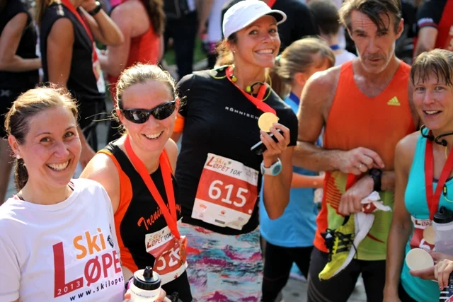Etter at jeg startet en løpegruppe i 2009 har jeg blitt kjent med utrolig mange løpere, jeg har ikke tall på hvor mange jeg kan sende en sms til å spørre om det passer med en løpetur. Jeg får masse ekstra heiing på løp, og jeg treffer nesten alltid mange kjente på løpsarrangement. Jeg er glad i å løpe alene, sortere tankene og rotet i hodet - men jeg setter også veldig stor pris på skravlete langturer eller bare en lett mil på kvelden med en av de mange spreke nabodamene her. I hektiske uker er dette min eneste mulighet til å være sosial men noen utenom jobb og familie.