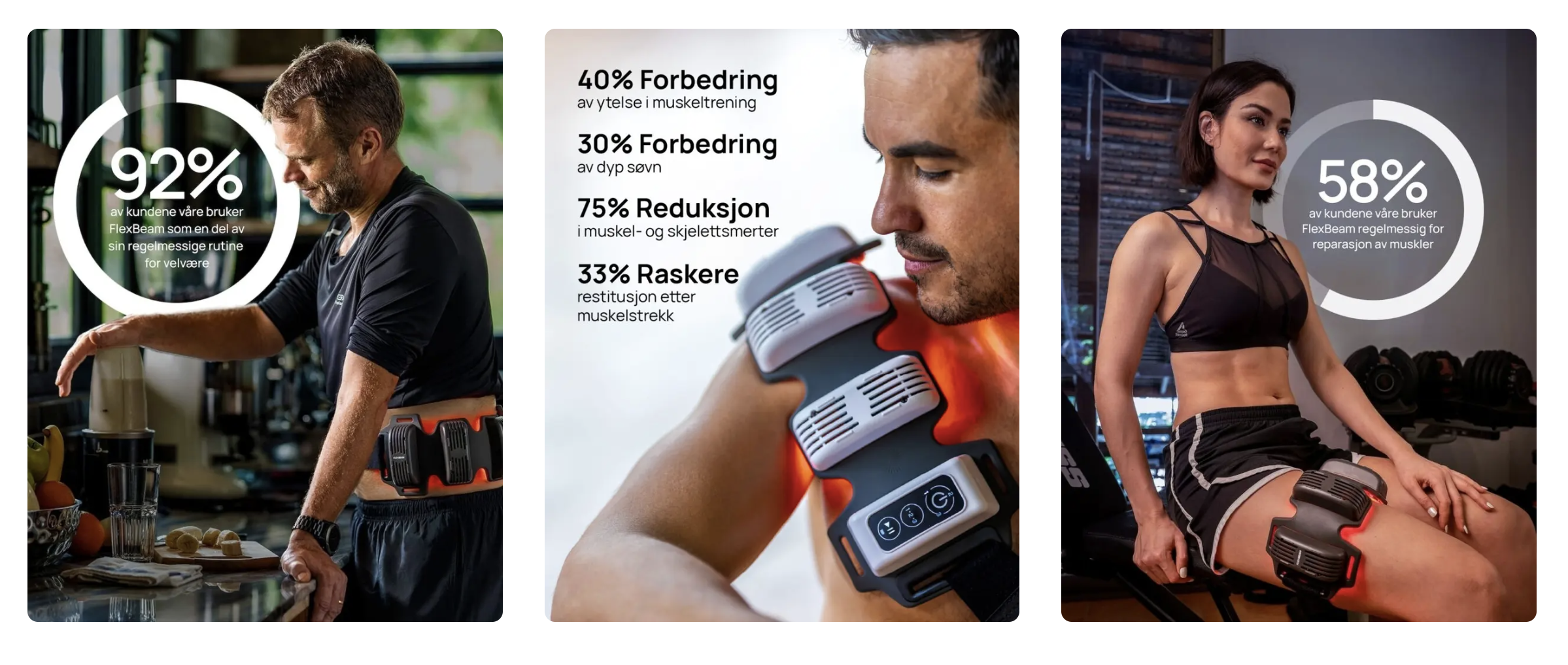 Kom deg tilbake fra skader og smeller, finn formen raskere og yt bedre med FlexBeams avanserte rødlysteknologi. Elsket av 30 000+ idrettsutøvere og treningsentusiaster over hele verden.